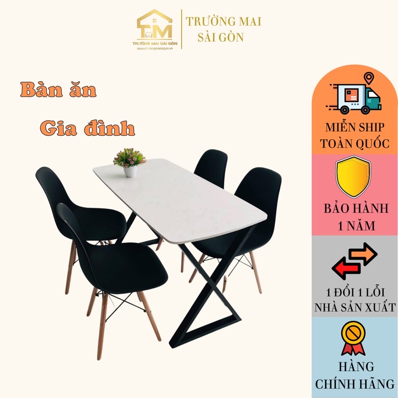 Nhà cửa & Đời sống > Nội thất > Bàn || bộ bàn ăn 4 ghế thông minh hiện đại Trường Mai khung sắt sơn tĩnh điện chống gĩ mặt MĐF chống ẩm cực tốtCòn hàng