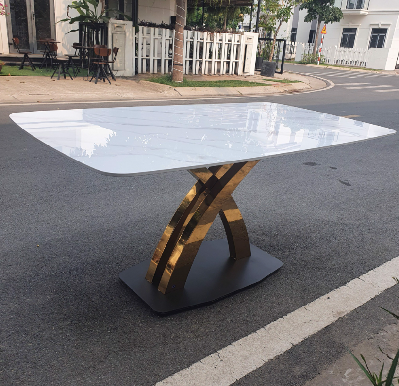 Model | Bàn ăn mặt đá Juno Sofa chân X inox sang trọng kích thước 1m4 x 80 x 75cm |