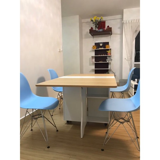 Không gian bếp của bạn khá chật trội, bạn cần 1 bàn ăn vừa rộng rãi cho gia đình 4-6 người của bạn, nhưng lại cần hơn 1 bàn ăn có thể gấp lại khi không sử dụng để tiết kiệm không gian bếp của bạn. Bạn đã lựa chọn thật đúng đắn.