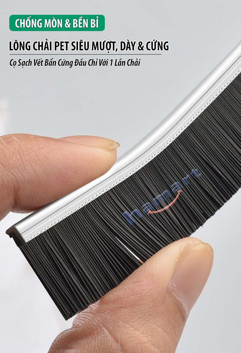 • Lông bàn chải dày cứng & bền: Chà sạch bụi bẩn, dầu mỡ, rong rêu, cặn bám lâu ngày mà không làm trầy xước bề mặt.