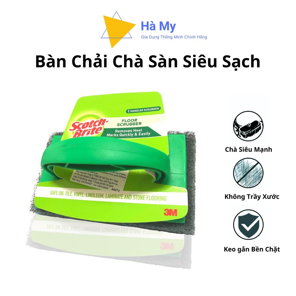 *Giới Thiệu Bàn Chải Chà Sàn Siêu Sạch Thế Hệ Mới 3M Scotch BriteBàn chải chà sàn siêu sạch thế hệ mới 3M Scotch Brite có tay cầm rộng,thoải mái được làm bằng nhựa PP cao cấp,bàn chà được cấu tạo bởi những sợi cước đặc biệt được liên kết bởi những hạt mài tròn gắn bởi keo 3M (công nghệ độc quyền của 3M Mỹ) chà siêu sạch nhưng không gây trầy xước.