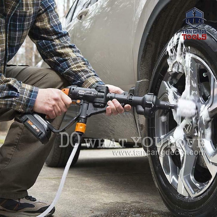 - Sản phẩm thiết kế chuyên dụng để kết nối các dòng máy xịt nước dùng pin WORX để vệ sinh bụi bẩn, cọ rửa ở những vị trí góc hẹp.