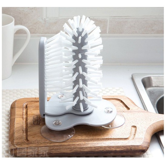 ** Bàn chải chà rửa với thiết kế thông mình hai đầu chà, 1 chà lớn và 1 chà nhỏ, giúp bạn 1 lúc cọ rửa cả mặt trong và mặt ngoài sản phẩm, như ly, chén, vật dụng có độ sâu mà tay khó chà rửa vào trong.** Thiết kế chân hít chân không giúp cố định bàn chải đứng yên, dễ dàng chùi rửa