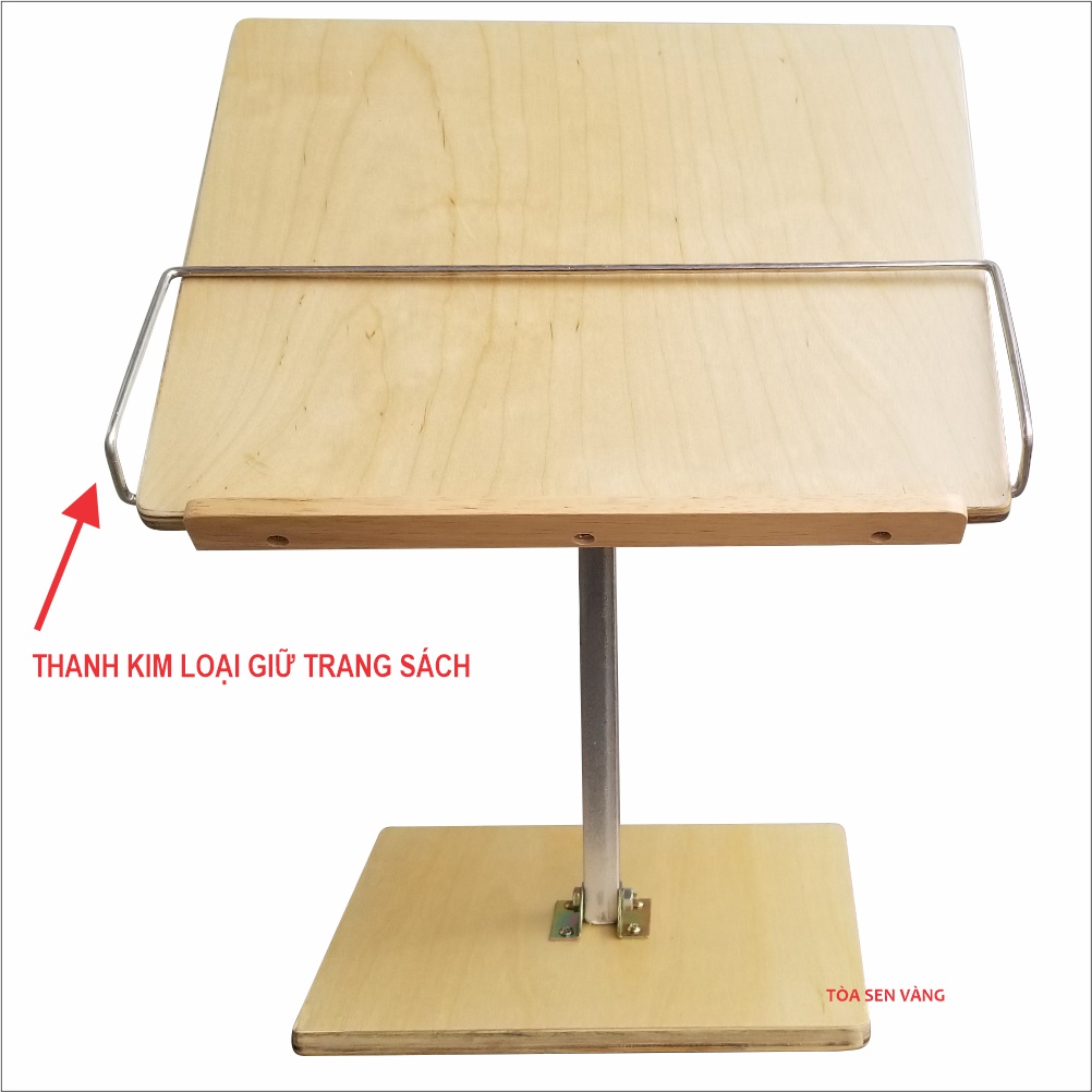 Bàn Đọc Kinh Sách Bằng Gỗ - Mặt bàn trơn không in và có thanh kim loại kẹp trang sách