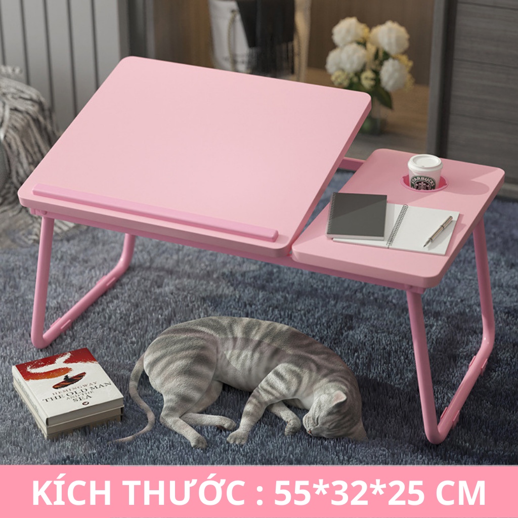Bàn gấp gọn thông minh, có thể nâng hạ mặt bàn để học tập, đọc sách và dùng Laptop trên giường Yoii StoreBàn gấp gọn để laptop đa năng có thể tùy chỉnh góc độ có khay để cốc nước.