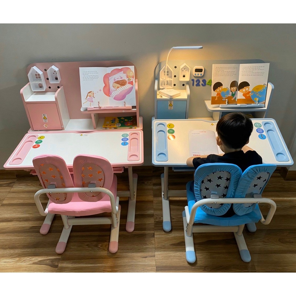Bộ bàn ghế học sinh thông minh tiểu học có giá sách chống gù chống cận cho bé - HTDVN