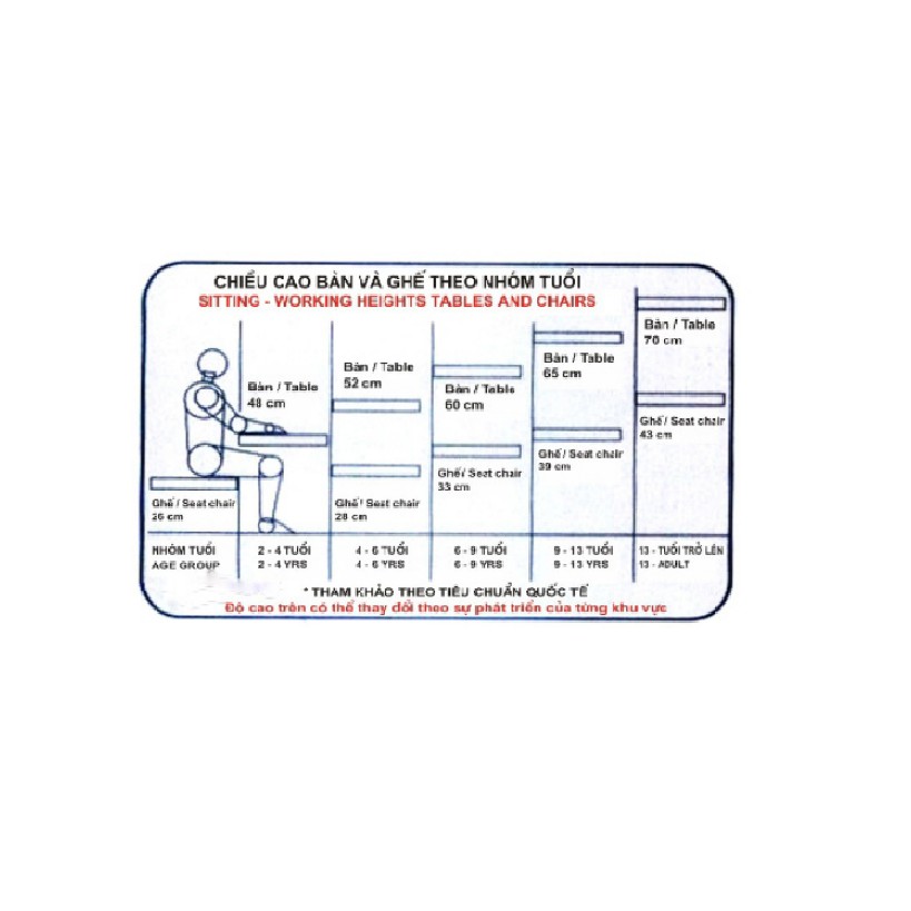 + Bộ bàn và ghế có sẵn đã được đo theo những tiêu chuẩn của Bộ Y tế, vì thế bạn nên sử dụng nguyên bộ, tránh tách rời bàn và ghế để ghép với những bộ có kích thước khác.