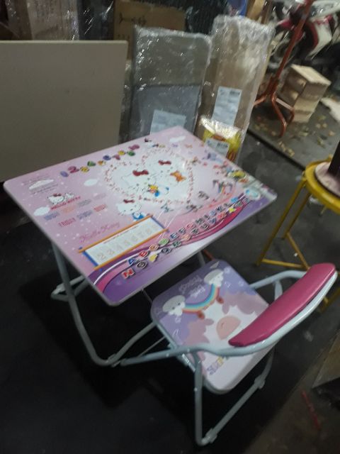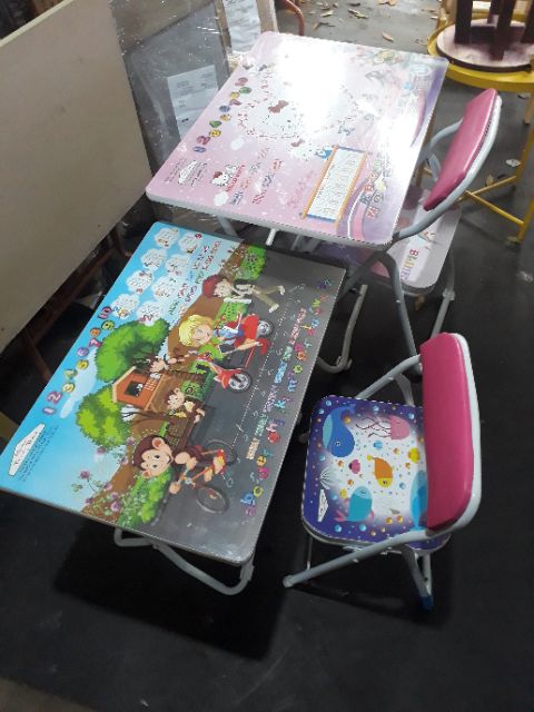 Bàn ghế mầm non gấp gọnChất liệu: khung sắt sơn tĩnh điện. mặt bàn + mặt ghế gỗ công nghiệp phủ họa tiết đáng yêu cho bé. Đệm tựa lưng ghế có mút được bọc bằng da chống đau lưng