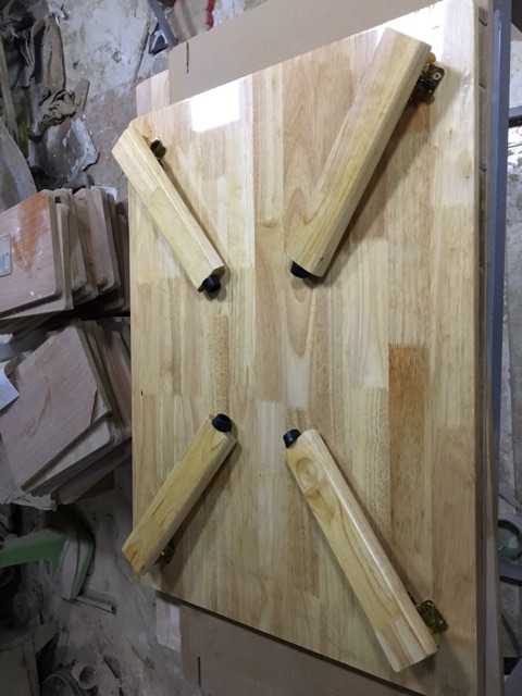 Chân bàn: gỗ cao su, gấp xếp gọn gàng khi không sử dụng