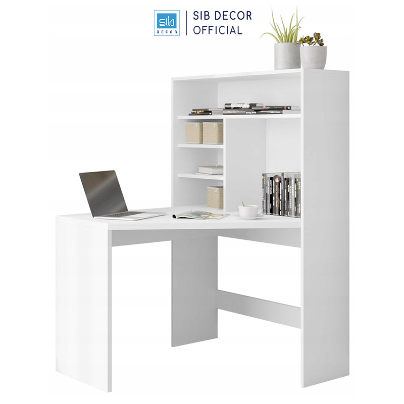 Bàn Gỗ Chữ L Cách Điệu Nhiều Ngăn Màu Trắng Thương Hiệu SIB Decor BLV108