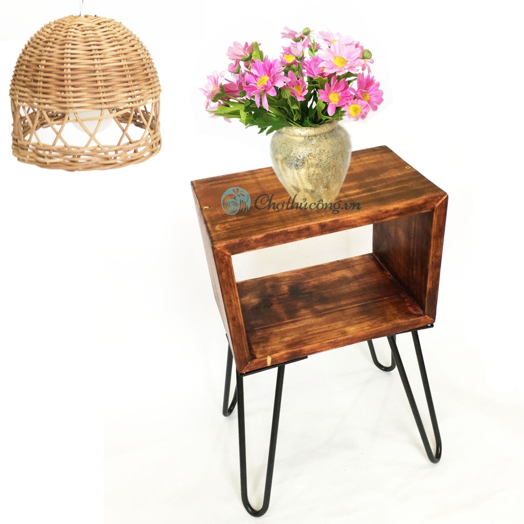 Nhà cửa & Đời sống > Nội thất > Bàn || Bàn gỗ thông kê đầu giường decor bàn trà D30xR20xC50cm, 4 chân sắt (gỗ thô hoặc chọn 5 màu sơn vintage cổ điển)Còn hàng