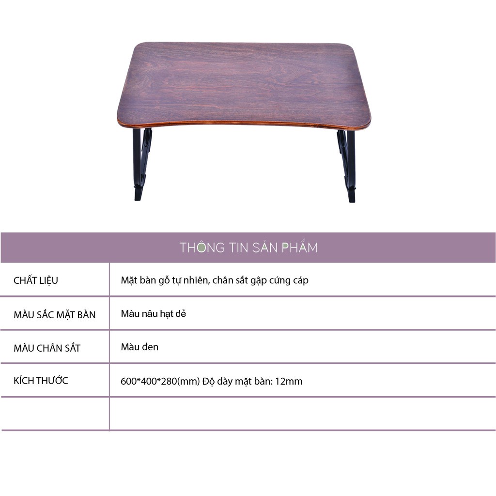 Nhà cửa & Đời sống > Nội thất > Bàn || Bàn học gấp gọn 100% GỖ THỊT chân bàn chữ U chắc chắn bàn để mày tính làm việc trên giường Flatinor màu nâu hạt dẻCòn hàng