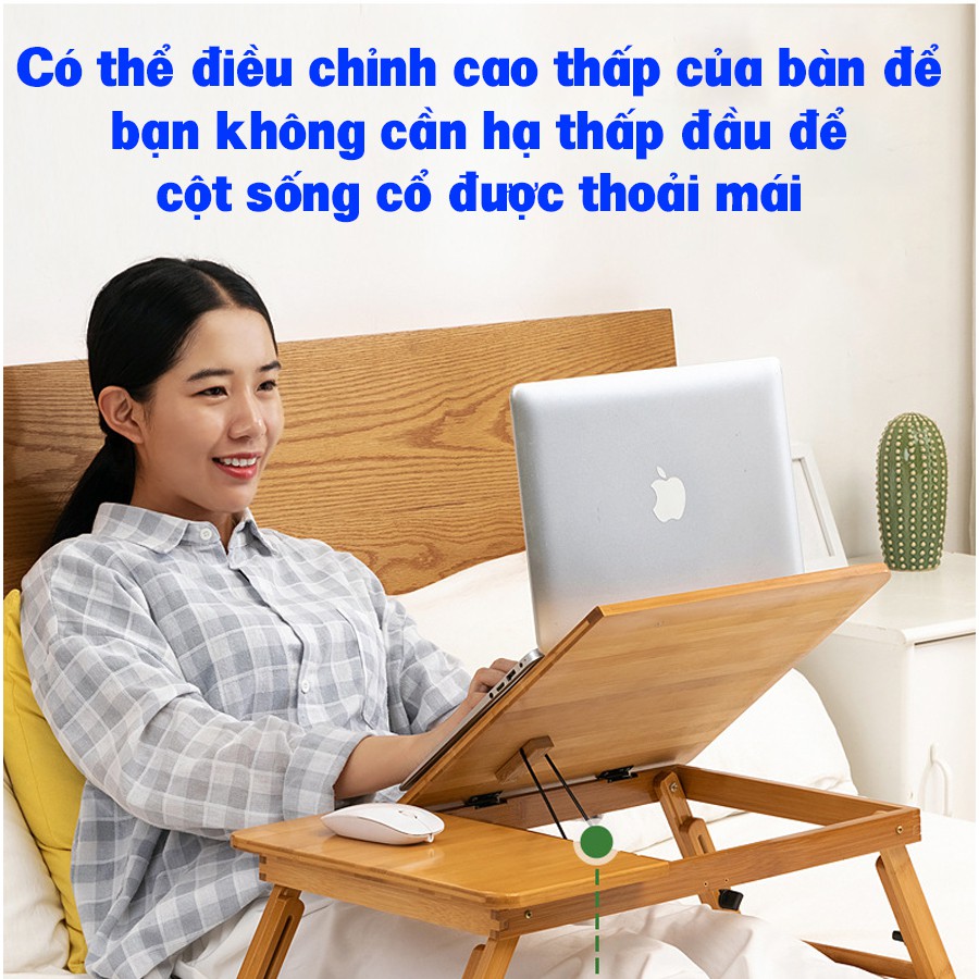 - Thiết kế thông minh với các khớp có thể điều chỉnh được: Điều chỉnh độ cao của mặt bàn, điều chỉnh độ cao của chân bàn, có kệ đỡ laptop hoặc sách cực kì tiện lợi