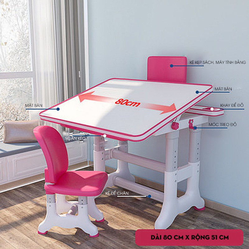 Bàn học sinh Thông Minh Hiện Đại chống gù-cận, tăng chỉnh độ cao, điều chỉnh nghiêng bàn size lớn loại 80cm