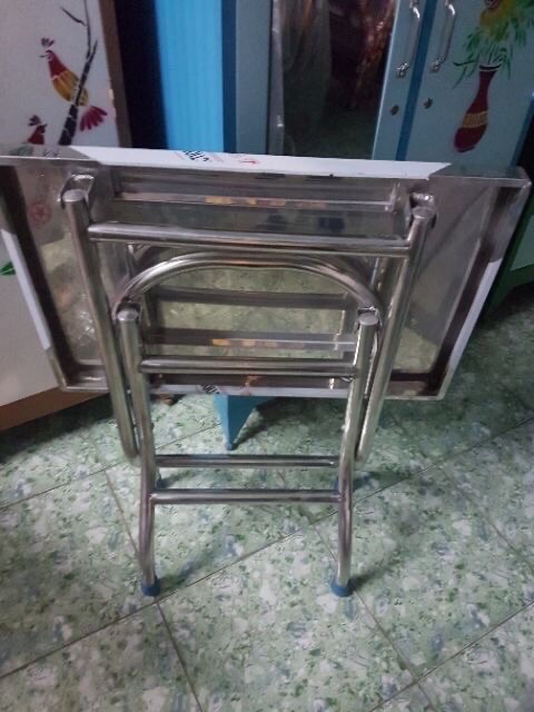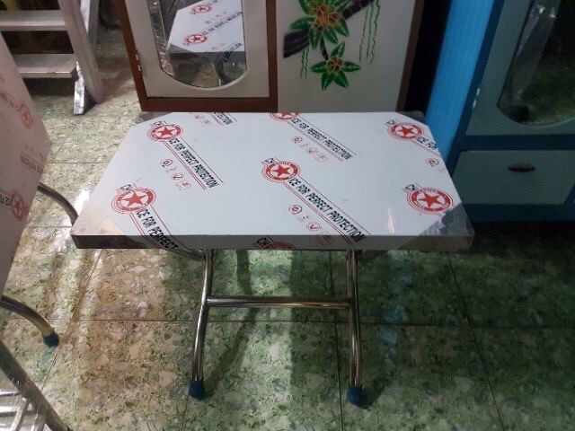 -Kích thước: rộng 50cm x dài 80cm x cao 75cm-Chất liệu: mặt bàn inox dày, chân bàn ống inox ¤32 rất chắc chắn và cứng cáp.