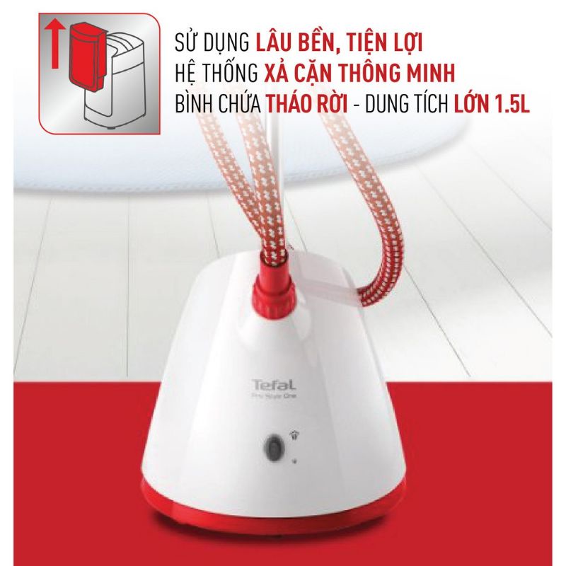 Sản phẩm bàn là cây hơi nước Tefal IT2440E0 với công suất 1800w mạnh mẽCó giá treo đồ để là rất tiện dụng , ngăn chứa nước có thể tháo rời