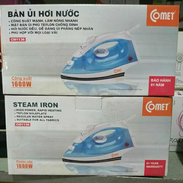 Thiết Bị Điện Gia Dụng > Thiết bị điện gia dụng nhỏ > Bàn là khô & Hơi nước || Bàn là Comet CM1136Còn hàng