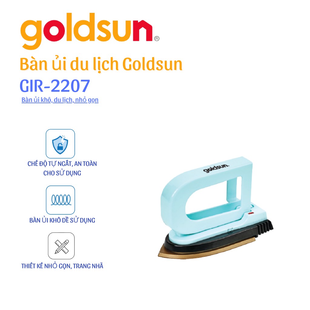 Thiết Bị Điện Gia Dụng > Thiết bị điện gia dụng nhỏ > Bàn là khô & Hơi nước || [Mã 44ELSALE2 giảm 7% đơn 300K] Bàn là du lịch nhỏ gọn chỉ 0.37kg Goldsun GIR2207Còn hàng