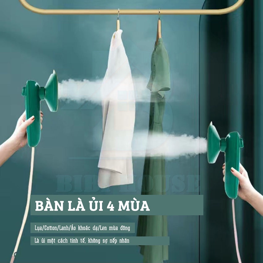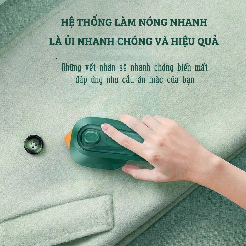 -Bàn là hơi nước cầm tay mini: Dễ dàng ủi bay mọi vết nhăn, hơi nước được phun tỏa đều ra thấm đều và làm ẩm làm mọn từng sợi vải,giúp việc là ủi thẳng các vết nhăn trên quần áo một cách dễ dàng hơn