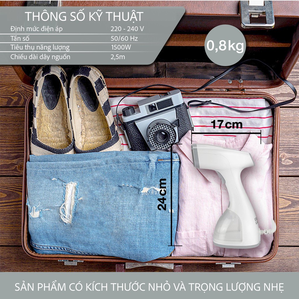 - Bàn là ủi hơi nước phiên bản dễ dàng mang theo khi đi du lịch, đi công tác mà không chiếm nhiều diện tích túi đồ của bạn với: