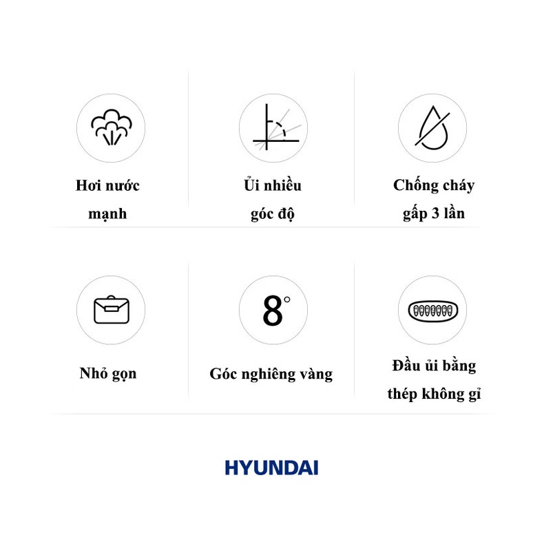 - Bàn là, bàn ủi hơi nước HUYNDAI HY-2081 sử dụng bộ gia nhiệt tiên tiến nhất, tự động ngắt khi quá nhiệt và âm thanh cảnh báo bất thường khi thiếu nước.