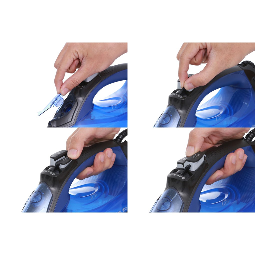 - Bàn ủi vận hành với nước máy thông thường. Xả cặn là chức năng làm sạch được tích hợp để loại bỏ việc tích tụ cặn bám và duy trì hiệu suất cao nhất cho bàn ủi.