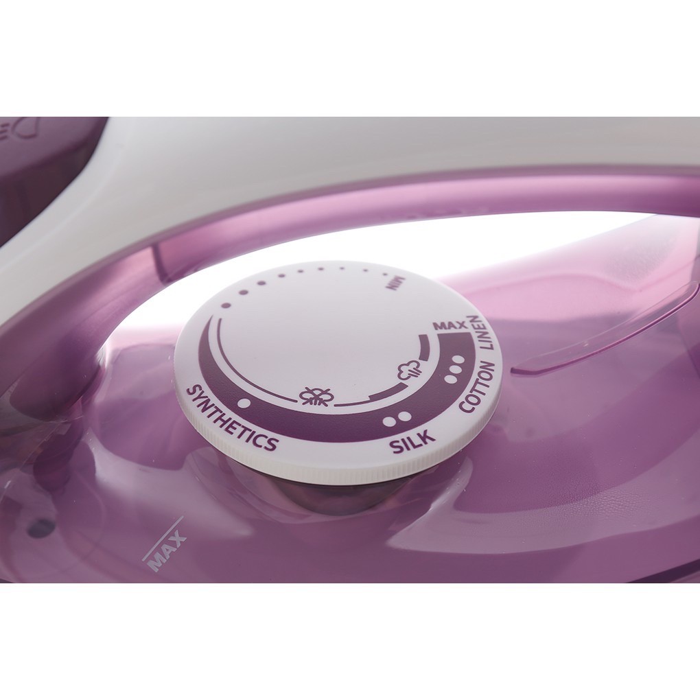 Nút xoay điều khiển nhiệt độ lớn, giúp bạn điều chỉnh nhiệt độ ủi phù hợp với từng loại quần áo từ thấp đến cao theo từng chất liệu vải (vải nylon, lụa, len, cotton, vải lanh), tránh phai màu vải.