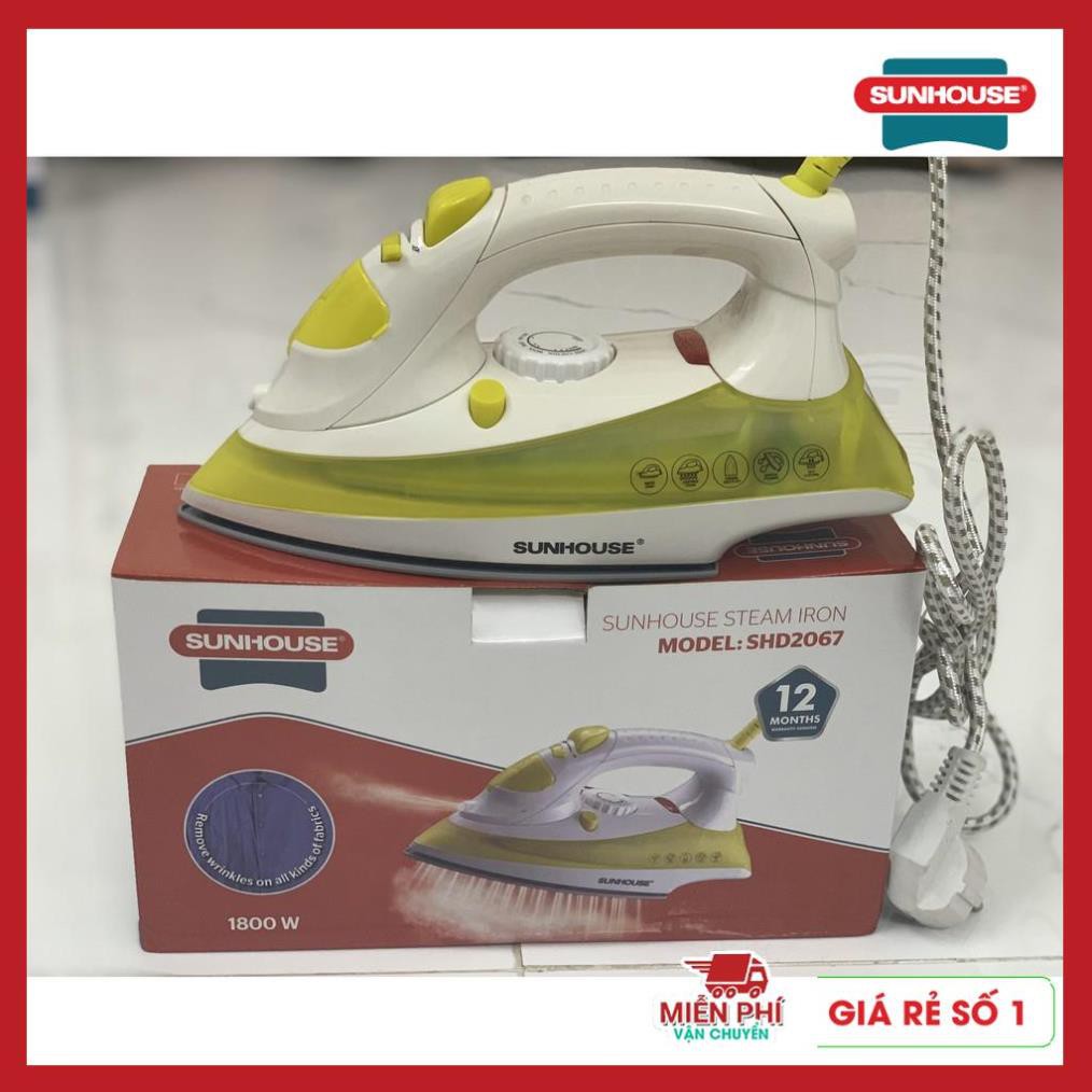 - Với mặt là chống dính, công suất phun hơi luôn duy trì ở mức cao đồng thời tích hợp chức năng điều chỉnh nhiệt độ linh hoạt cho mọi loại vải, bàn là hơi SUNHOUSE SHD2067 chắc chắn sẽ khiến bạn hài lòng bởi khả năng là phẳng mọi nếp nhăn, cho quần áo luôn như mới.