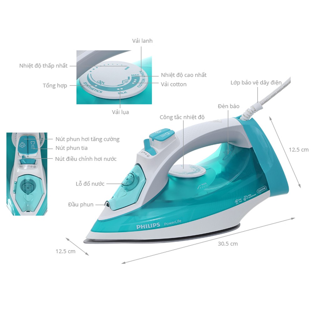 Thông số kỹ thuật chi tiết Bàn ủi hơi nước Philips GC2992 2400 WĐặc điểm sản phẩm
