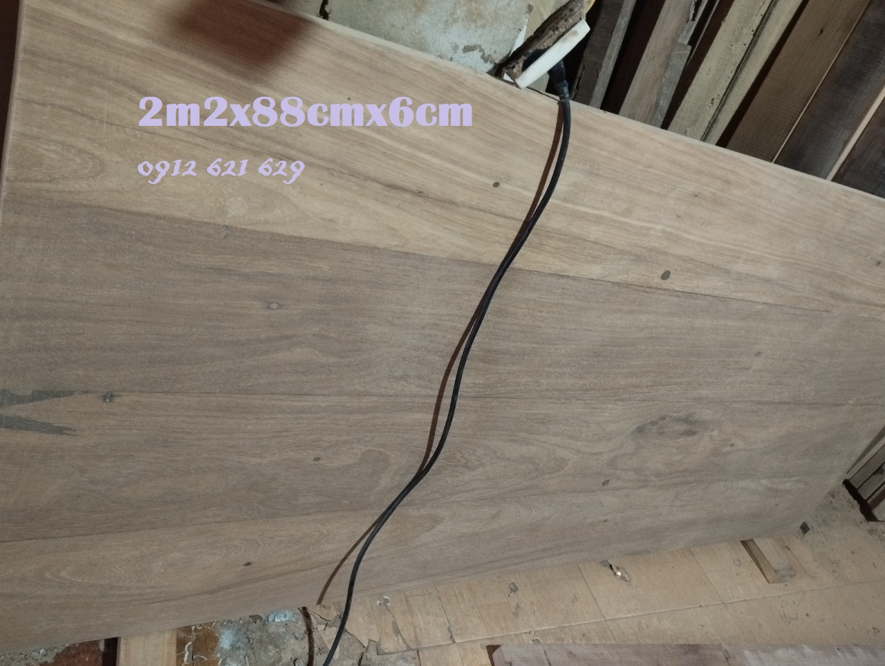 Mặt bàn được ghép bởi 4 tấm D2m2xR20cmxC6cm, Hoàn thiện chắc chắn, đánh bóng, chưa sơn PU