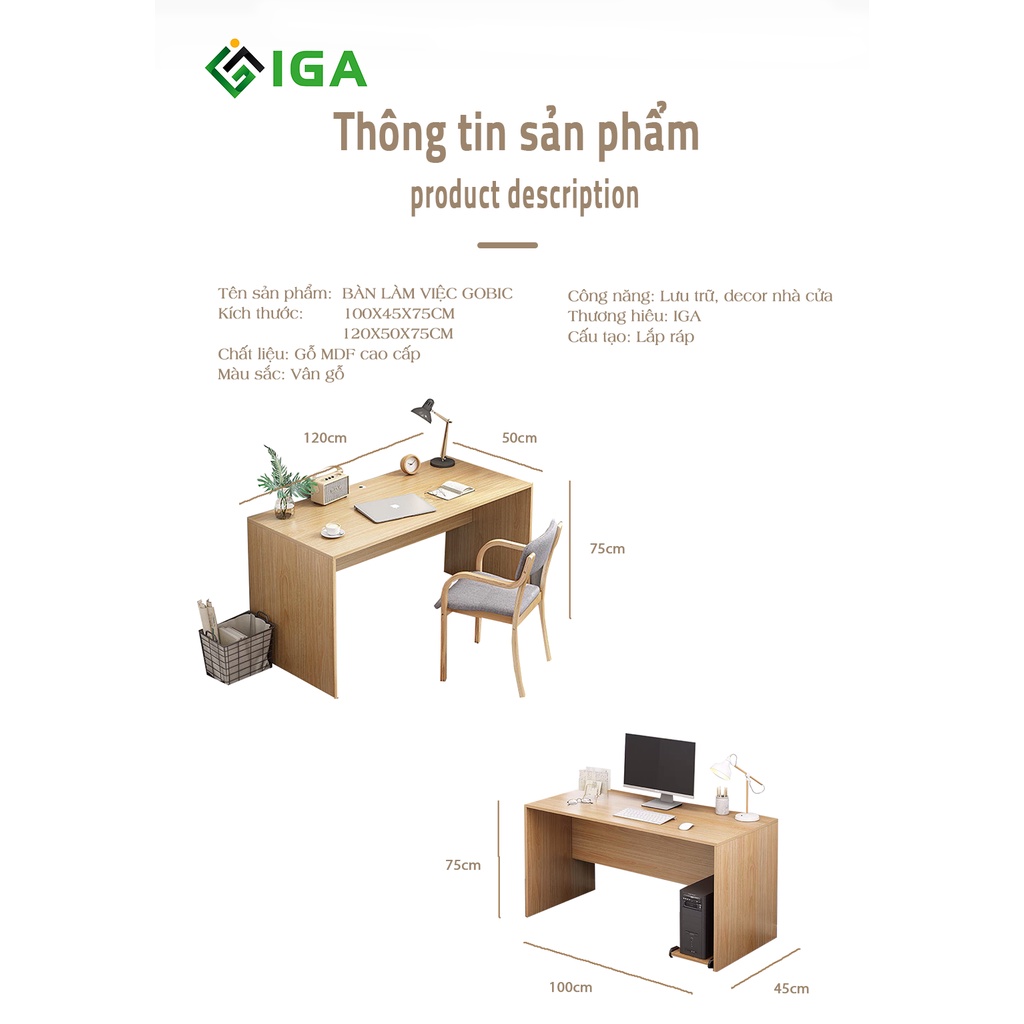 Nhà cửa & Đời sống > Nội thất > Bàn || [Mã LIFEMALL9944 giảm 15% đơn 99K] Bàn Làm Việc IGA Phong Cách Hiện Đại - GP153Còn hàng