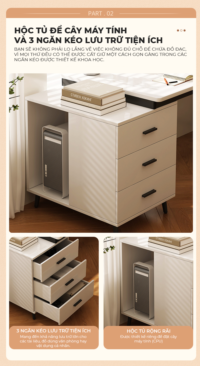 - Tên sản phẩm: Bàn làm việc kèm tủ hồ sơ tiện lợi