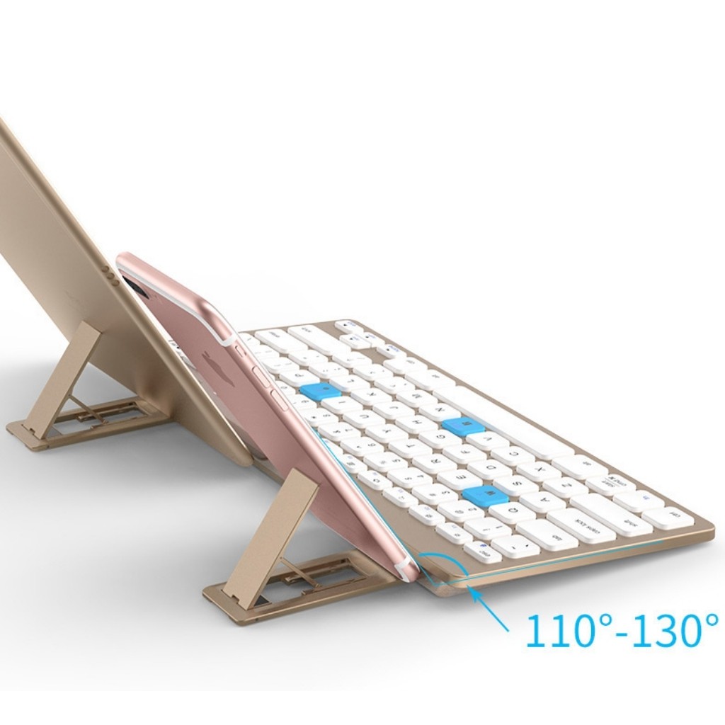 - Bàn phím được tính toán thiết kế theo tiêu chuẩn, có rãnh phù hợp cho Smartphone và tablet, vì vậy người dùng có thể thao tác ở góc độ thuận tiện và thoải mái , dễ dàng đọc được chữ hiển thị trên màn hình.