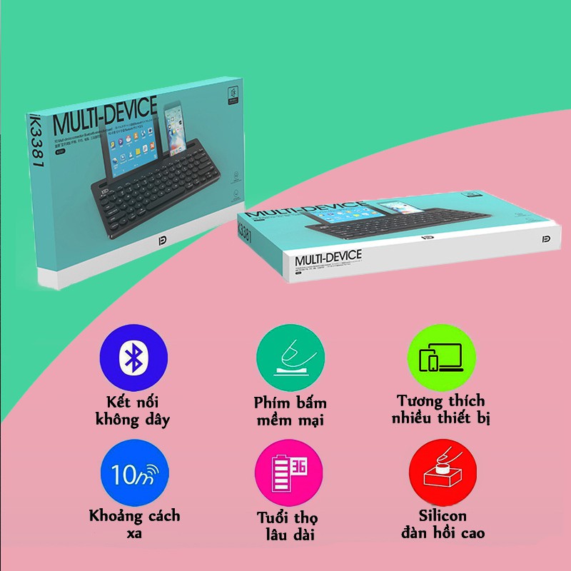Bàn Phím Bluetooth Forter IK3381🍉 Bạn sở hữu nhiều thiết bị thông minh như điện thoại iphone, máy tính bảng, laptop mà chỉ cẩn một chiếc bàn phím duy nhất, mà lại nhỏ gọn nhẹ, chất lượng tốt mà giá phải chăng thì Bàn Phím Bluetooth Forter IK3381 thứ bạn cần.