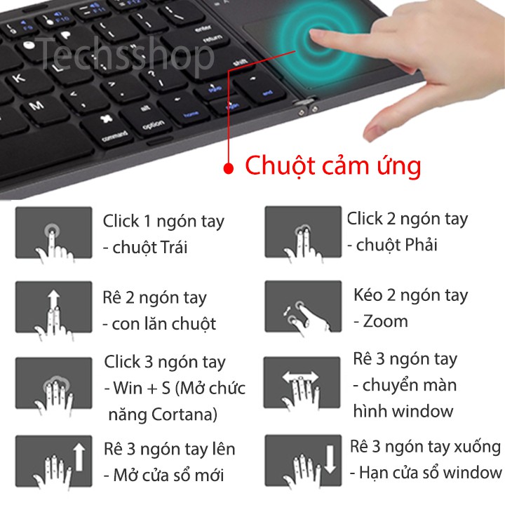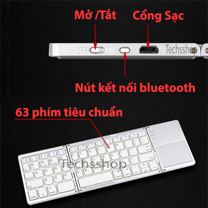 Giới thiệu Bàn phím bluetooth không dây gấp gọn có touchpad - Loại phím vuông