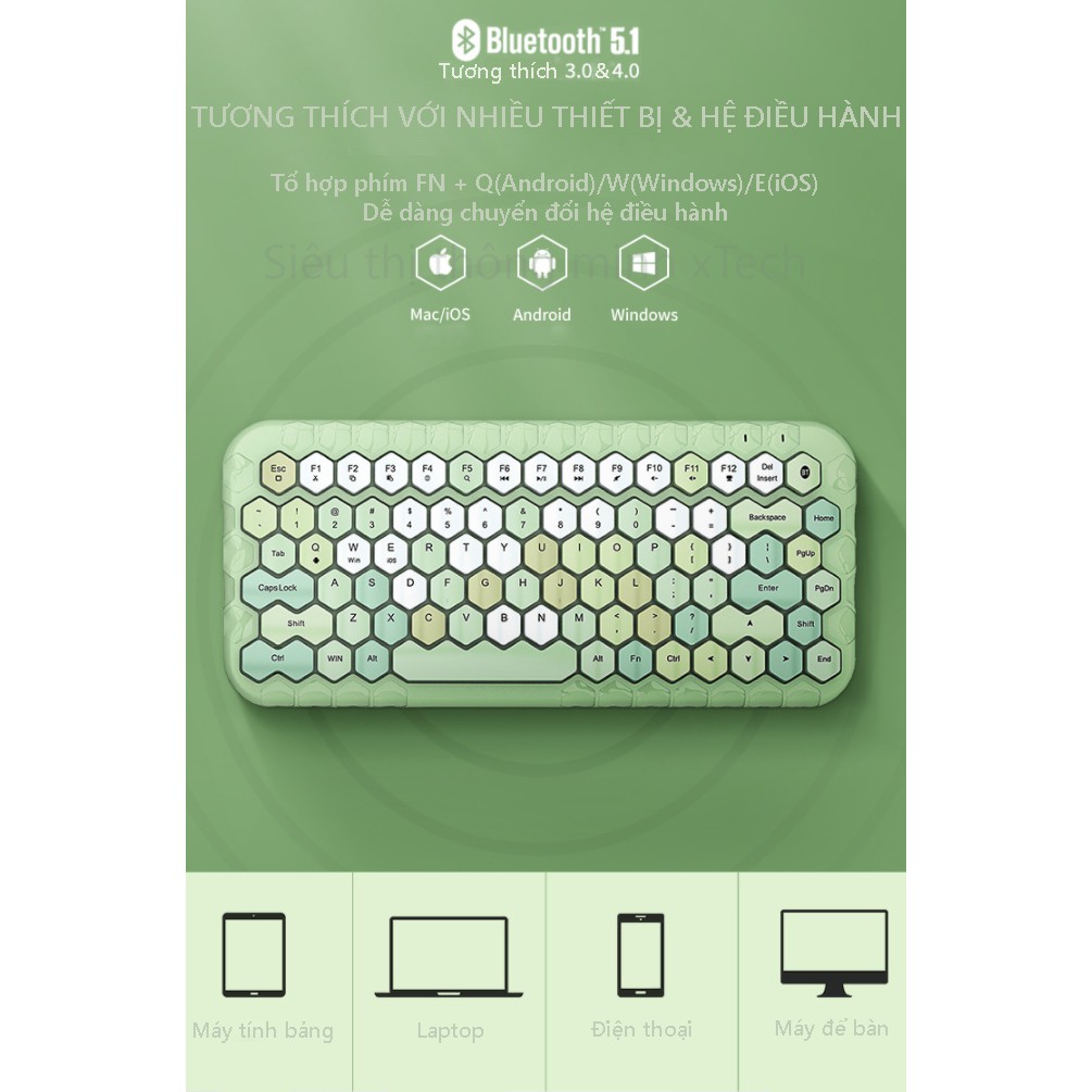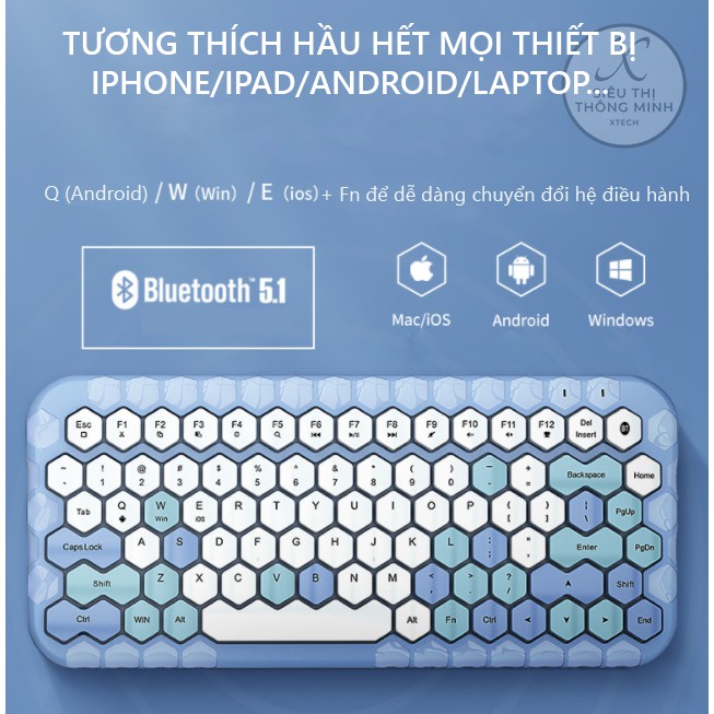 *** Có thể kết nối nhiều hệ điều hành. Để chuyển đổi chỉ cần bấm Q(Android)/W(Win)/E(iOS) + Fn để chuyển đổi.