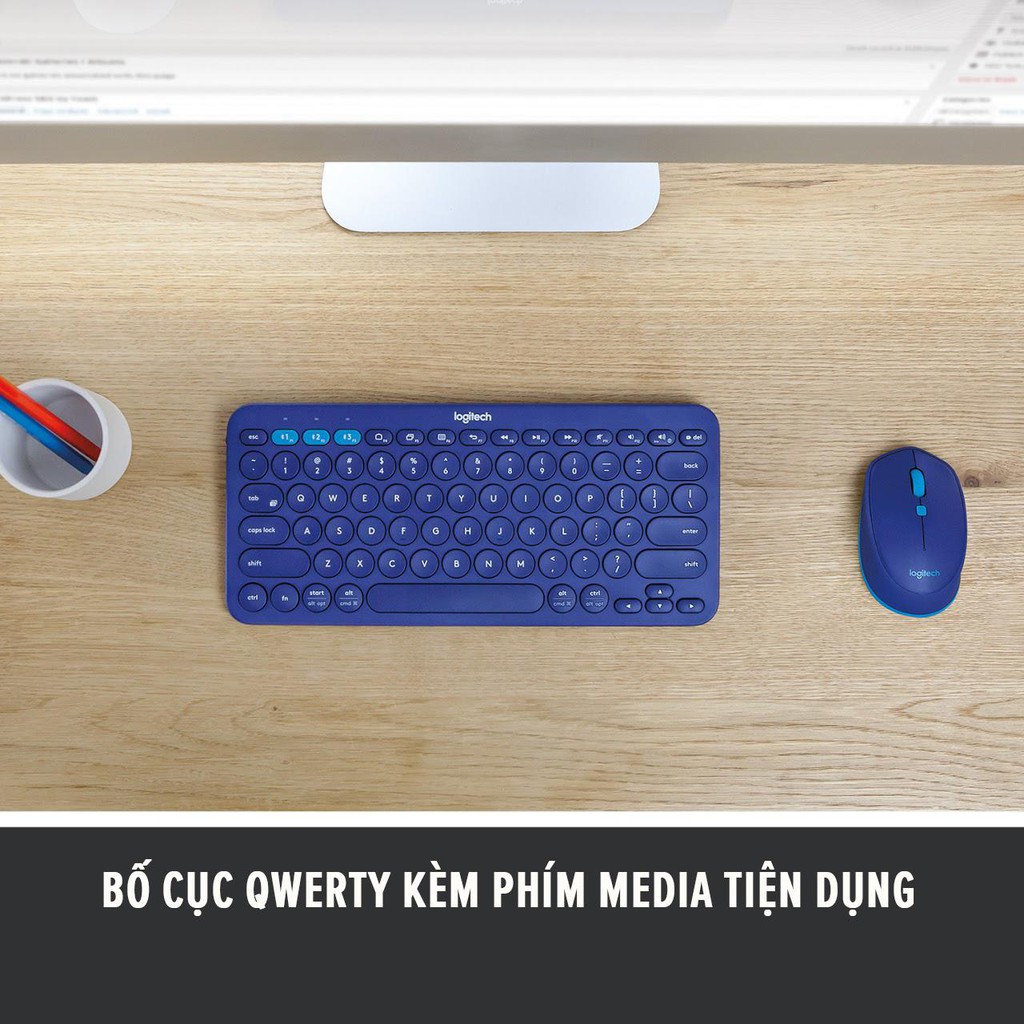 - Công nghệ Bluetooth không dây giúp bạn có thể kết nối với các thiết bị nhanh chóng và ổn định .Công nghệ không dây giúp người sử dụng thoải mái trong việc di chuyển cũng như hỗ trợ các chức năng giảng dạy, học tập và làm việc. Ngoài ra, bàn phím còn có thể kết nối dễ dàng với 3 thiết bị cùng một lúc thông qua nút chuyển đổi nhanh "Easy-Switch" ở góc trái trên bàn phím.