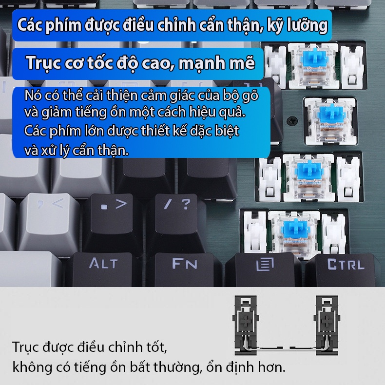 - Bàn phím sử dụng cơ blue switch cho cảm giác gõ lách cách siêu đã tai và cảm giác gõ cực đã