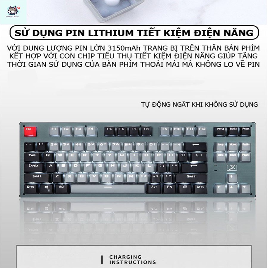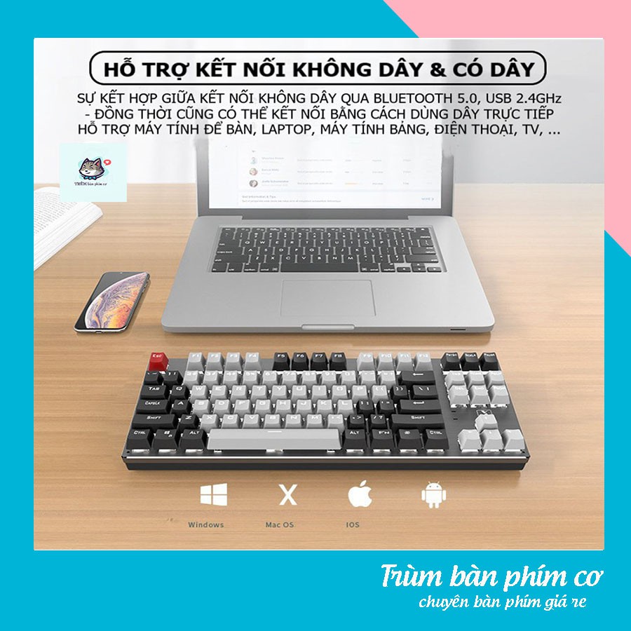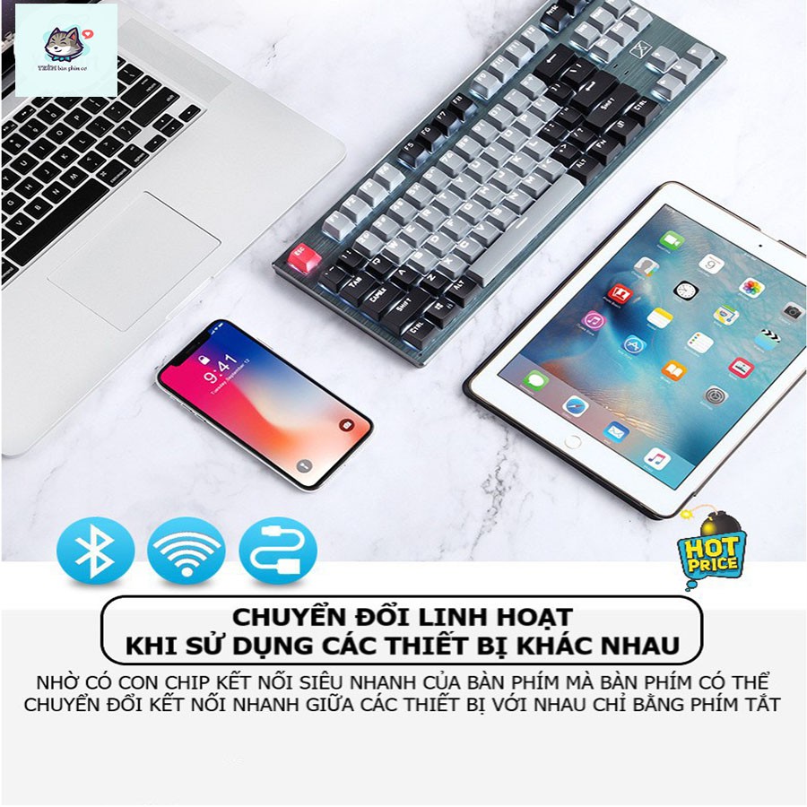 Bàn phím CƠ Bluetooth Không Dây Pin Sạc K950 LED đẹp, phím blue switch cho máy tính pc laptop, điện thoại, máy tính bảng