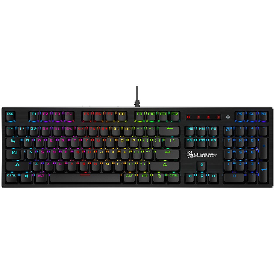 Bàn Phím Game Có Dây USB Bloody - B820R bao gồm LK Optic Switch có khả năng phản ứng với tốc độ cực nhanh 0.2s mà không bị lag. Một điểm đột phá so với bộ chuyển đổi kim loại truyền thống tiêu tốn 18 ~ 30ms.