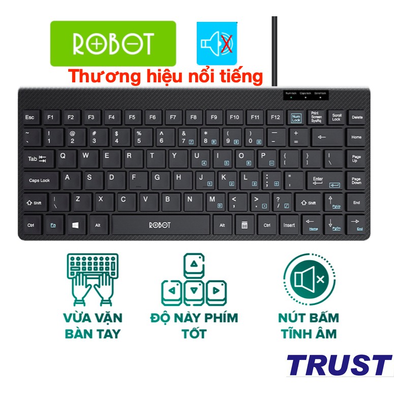 Máy tính & Laptop > Chuột & Bàn Phím > Bàn Phím Máy Tính || Bàn Phím Có Dây Mini ROBOT RK10 Nút Ấn Tĩnh Âm Không Gây Ồn - Nhỏ Gọn Thuận Tiện Mang Theo, Kích Thước 31x13.7x2.5cmCòn hàng
