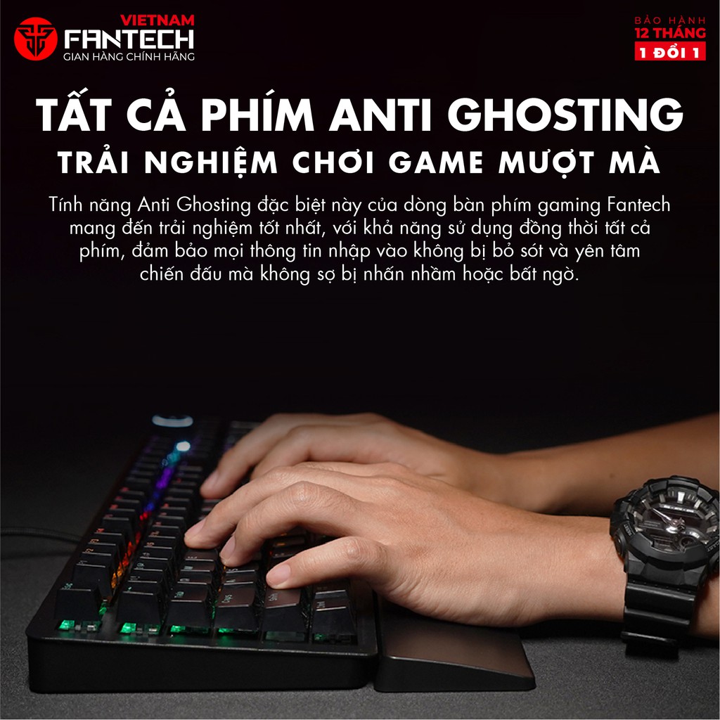 - Tính năng Anti Ghosting đặc biệt này của dòng bàn phím gaming Fantech mang đến trải nghiệm tốt nhất, với khả năng sử dụng đồng thời tất cả phím, đảm bảo mọi thông tin nhập vào không bị bỏ sót và yên tâm chiến đấu mà không sợ bị nhấn nhầm hoặc bất ngờ.