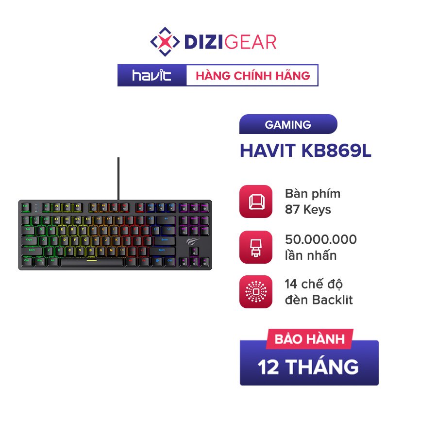 Bàn Phím Cơ Gaming HAVIT KB869L, 87 Phím, 14 Chế Độ Led Rainbow - Chính Hãng BH 12 Tháng Dizigear