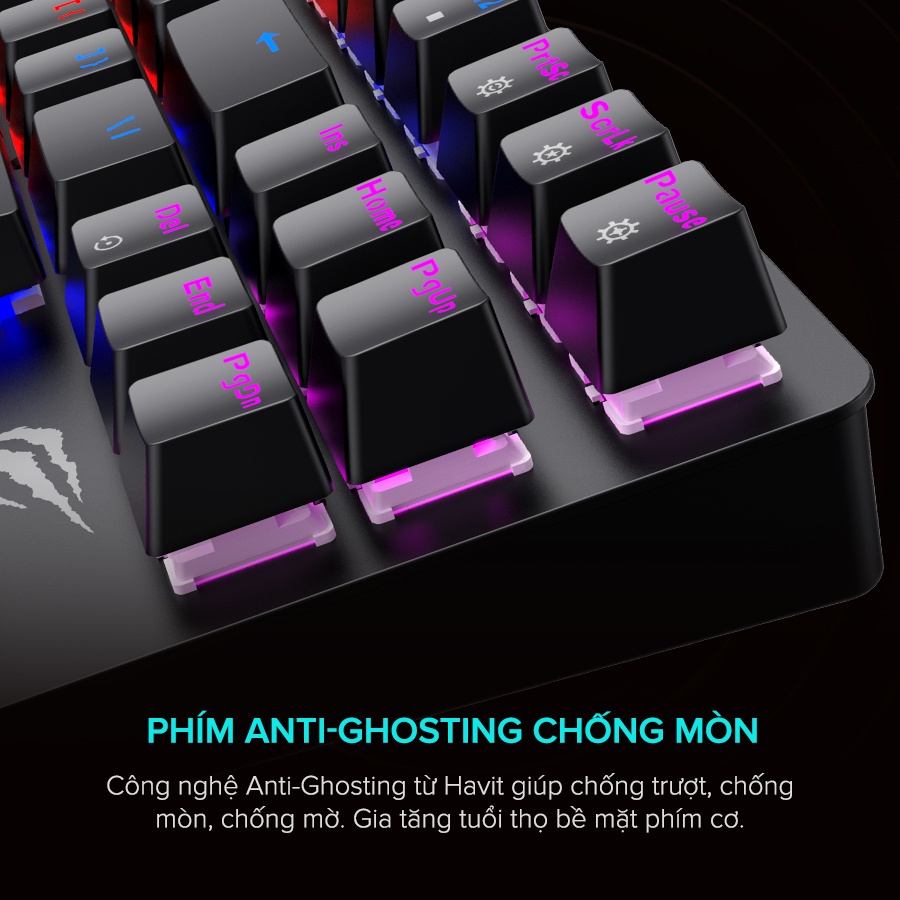 Công nghệ Anti-Ghosting từ Havit giúp chống trượt, chống mòn, chống mờ. Gia tăng tuổi thọ bề mặt phím cơ