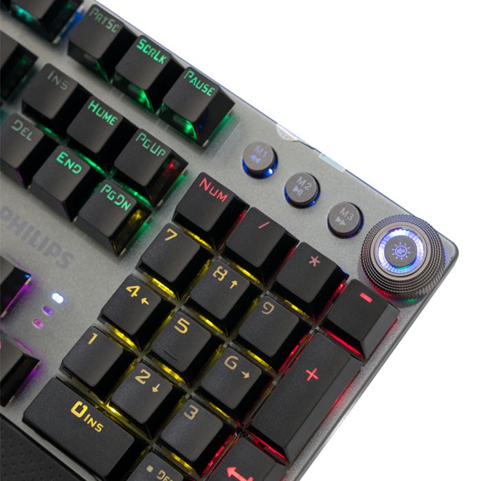- Tích hợp đèn led Rainbow 20 chế độ khác nhau, 3 cụm led game M1/M2/M3, nút đa phương tiện tăng giảm âm (kiêm chỉnh đèn led)