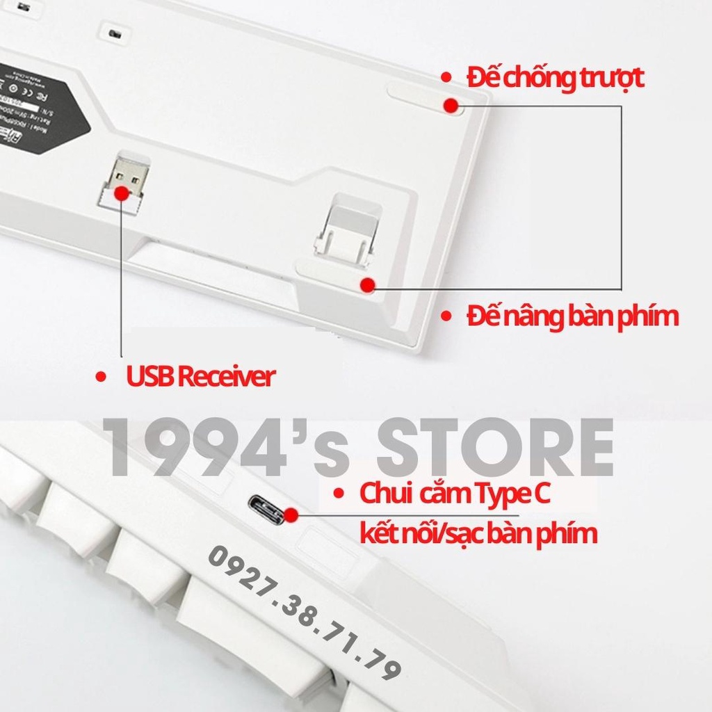 - 3 chế độ kết nối : Bluetooth 5.1 (3 thiết bị) - Wireless receiver 2.4G - Type C (được tặng kèm)