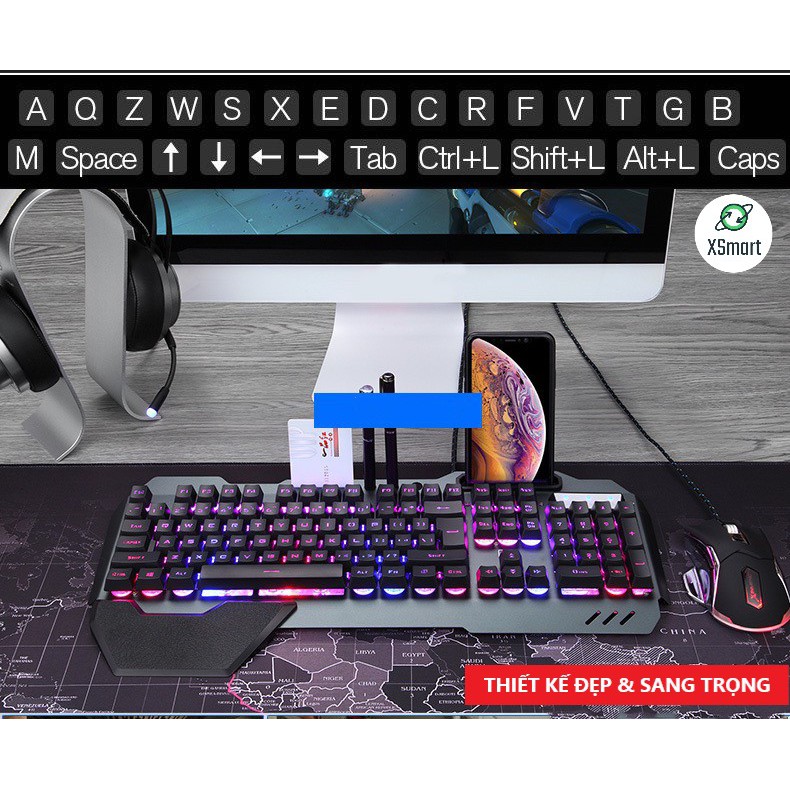 Bàn Phím Gaming K618 Super Pro New 2022 Led Đổi Màu 10 Chế Độ Led Khác Nhau Ngang Phím Cơ PC - XSMART