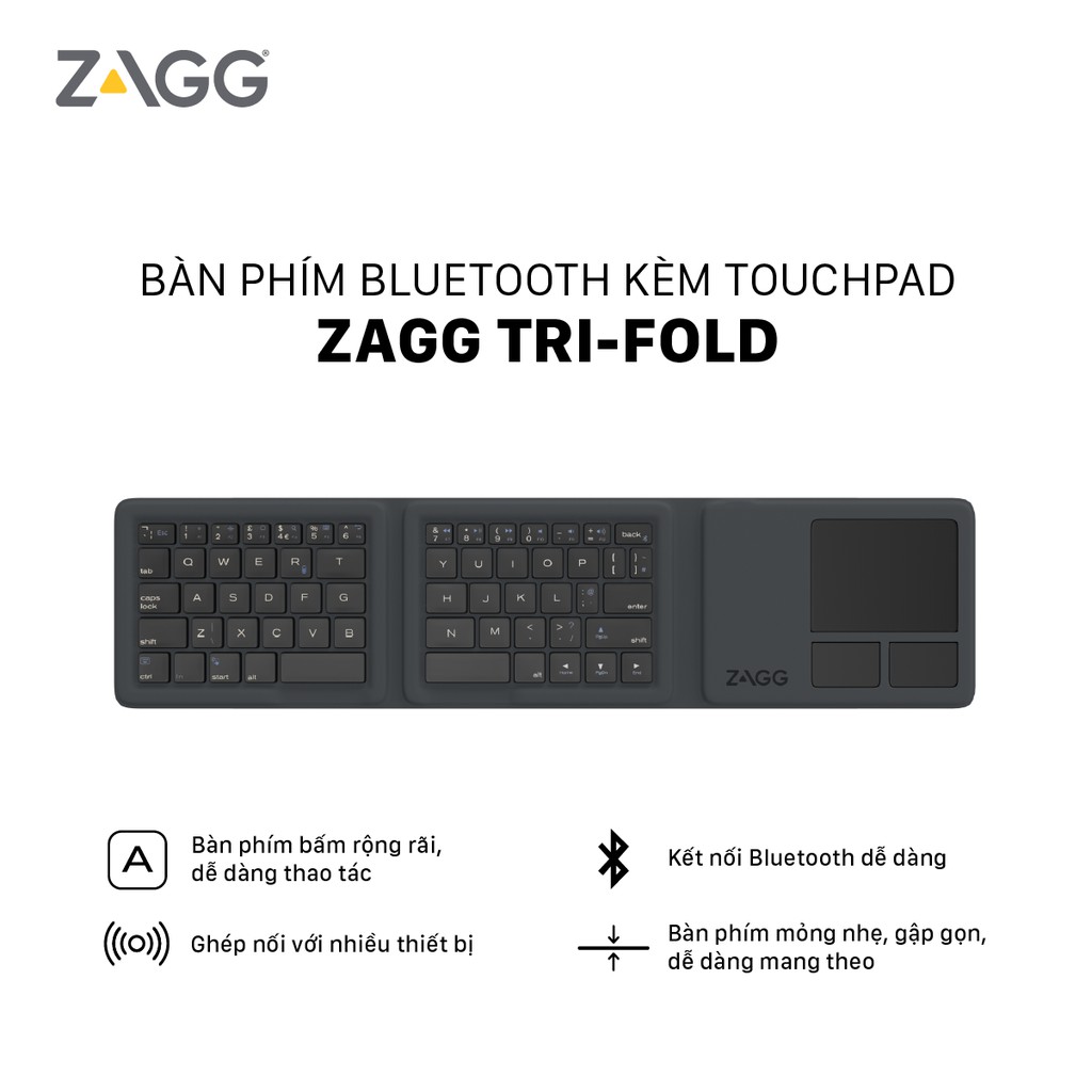 Máy tính & Laptop > Chuột & Bàn Phím > Bàn Phím Máy Tính || [Mã ELMALL150 giảm 8% đơn 500K] Bàn phím gấp 3 ZAGG Universal Keyboards - Tri Folding 103203612Còn hàng
