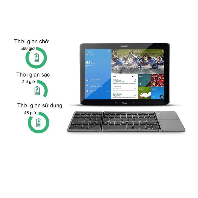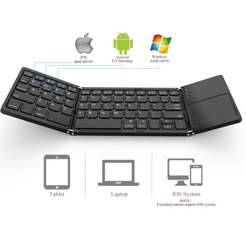 Máy tính & Laptop > Chuột & Bàn Phím > Bàn Phím Máy Tính || Bàn phím gấp gọn Bluetooth tích hợp chuột hỗ trợ chơi game B033, Bàn phím không dây có di chuột Bluetooth gấp gọnCòn hàng
