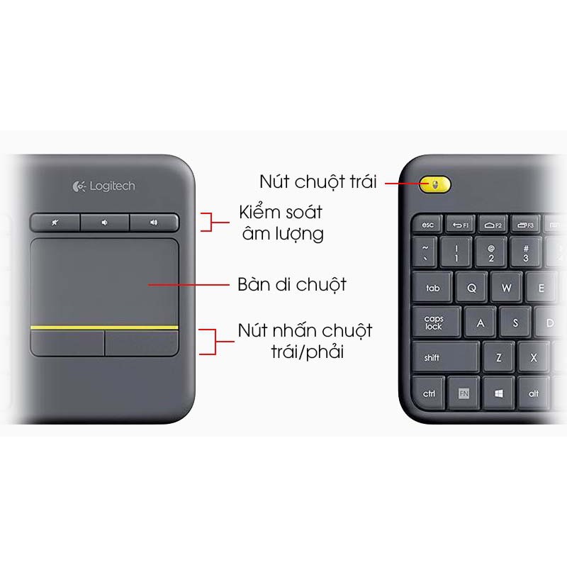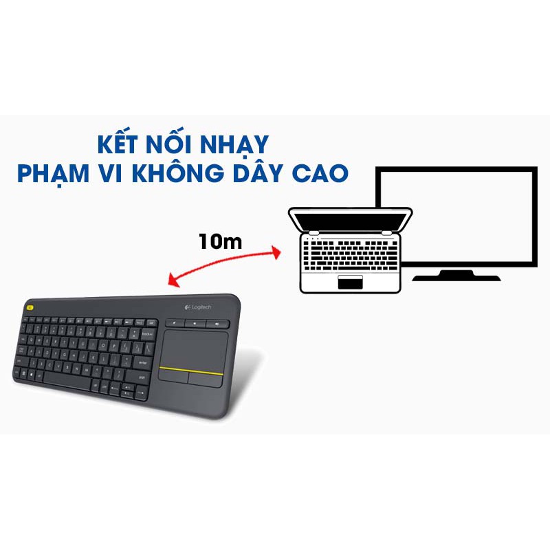 Bàn phím không dây cắm vào-là-sử dụng với bàn di chuột tích hợp cho bạn quyền điều khiển hoàn toàn máy tính có kết nối TV từ ghế sô-pha của mình. K400 là bàn phím yên tĩnh, dễ sử dụng với bàn di chuột tích hợp, cộng với tất cả các phím nóng mà người dùng Windows® và Android™ đều biết và yêu thích. Hoàn thiện với các phím điều khiển phương tiện giúp cho việc điều hướng TV có kết nối máy tính trở nên nhanh chóng.ƯU ĐIỂM SẢN PHẨM